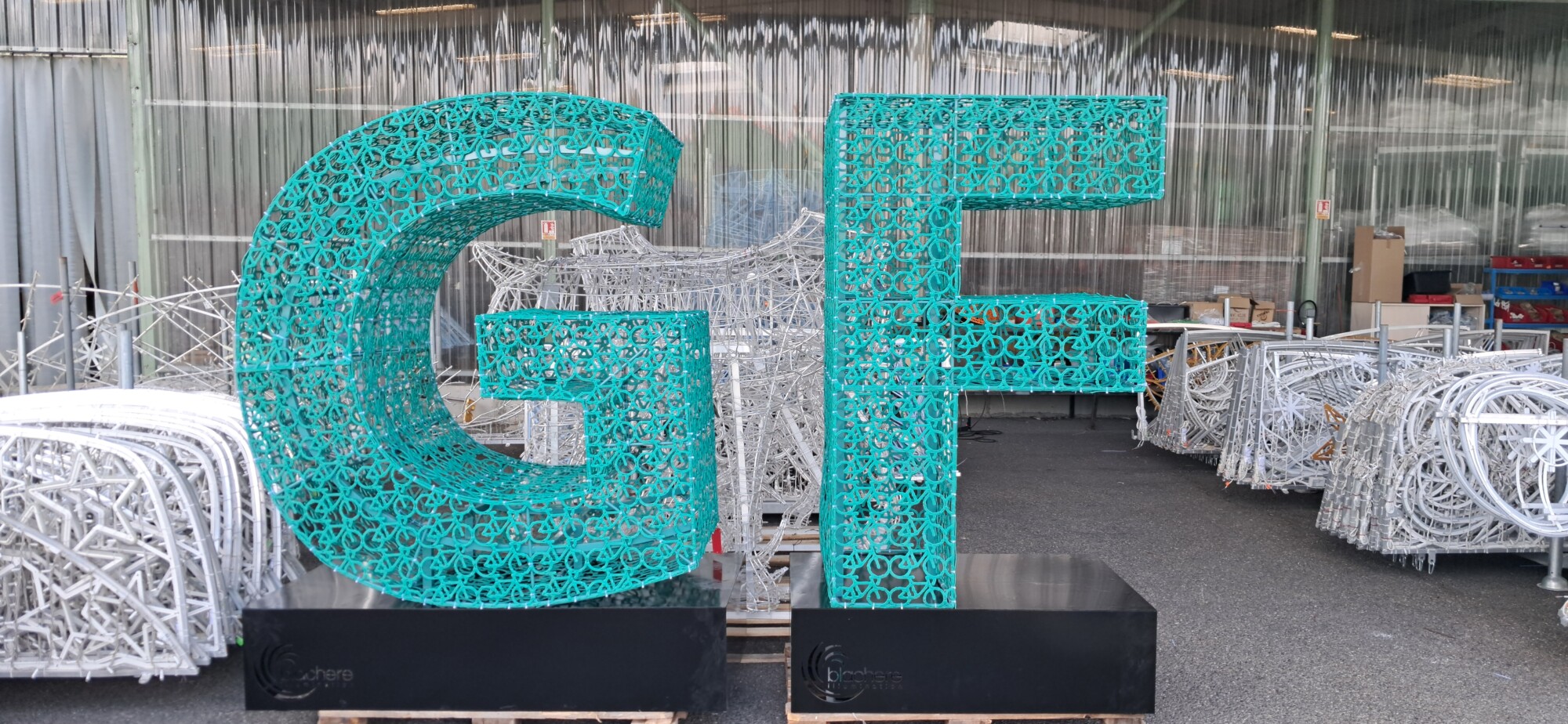 Dans le cadre du partenariat avec les GF Series Colnago, ils ont conçu un décor en 3D entièrement recouvert d’un pattern vélos, conçu spécialement pour eux. Grâce à Flexiprint, ce design unique incarne l’engagement écologique tout en étant esthétiquement remarquable.